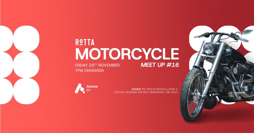 Join us on the 28th of November for the Rotta Motorcycle Meetup at Avenue 77!